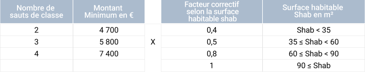 Les rénovations des logements E, F et G peuvent être effectuées en 2 étapes dans un délai maximal de 5 ans minimum; vous devez réaliser un saut d'au moins 1 classe énergétique, sauf si la lettre initiale du logement (qui est celle obtenue après la première étape) est E. Dans ce cas, vous devez réaliser un saut d’au moins 2 classes énergétiques (source Guide Anah Juillet 2025).