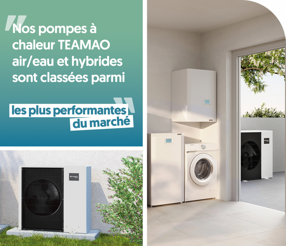 Nos pompes à chaleur TEAMAO air/eau et hybrides sont classées parmi les plus performantes du marché puisque leurs performances oscillent entre 4,39 et 5 kilowattheures produits à partir d’un seul kilowattheure consommé. Plus le rendement énergétique est élevé, moins l’empreinte environnementale est importante. À noter toutefois que le COP seul ne garantit pas des économies et la solution de chauffage doit être bien dimensionnée.
